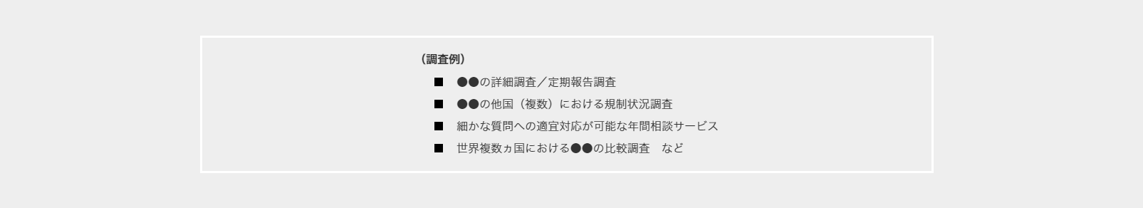 - ●●の他国(複数)における規制状況調査