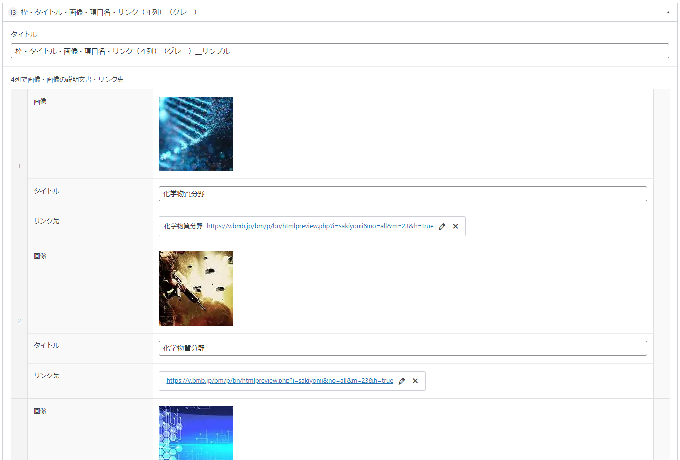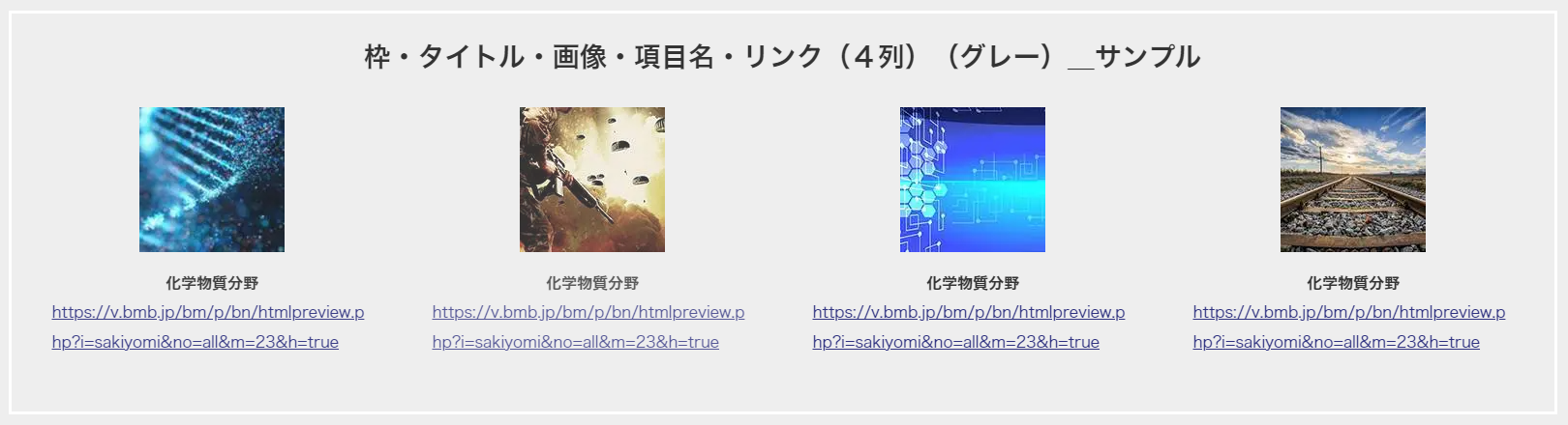 13_ 枠・タイトル・画像・項目名・リンク(4列)(グレー)